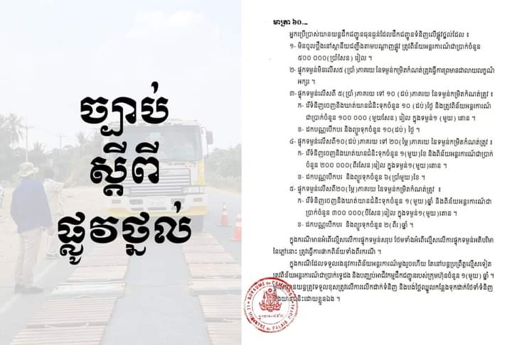ជាក់ស្តែងបន្ទាប់ពីសម្តេចតេជោនាយករដ្ឋមន្ដ្រី នៃព្រះរាជាណាចក្រកម្ពុជា បានលើកលែងបន្ធូរបន្ថយ និងដោះលែងរថយន្តចំនួន ២២៩គ្រឿង កាលពីថ្ងៃទី៣០ ខែ កញ្ញា ឆ្នាំ២០២១ មក រថយន្តដឹកជញ្ជូនលើសទម្ងន់កម្រិតកំណត់ ដែលផ្ទុកទម្ងន់លើសពី២០(ម្ភៃ)ភាគរយ ចំនួន៧៥គ្រឿង ត្រូវបានមន្ត្រីមានសមត្ថកិច្ចប្រចាំស្ថានីយជញ្ជីងអចល័ត និងជញ្ជីងចល័តនៃក្រសួងសាធារណការ និងដឹកជញ្ជូន បង្ក្រាប និងស្ទាក់ចាប់បានជាបន្តបន្ទាប់។
