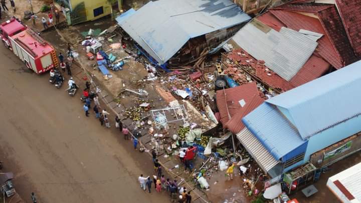 ខេត្តមណ្ឌលគិរី ៖ មនុស្សចំនួនប្រាំមួយនាក់បានរងរបួសធ្ងន់ស្រាល ក្នុងហេតុការរថយន្តដឹកស៊ីទែនហ្គាសខ្នាតធំមួយគ្រឿង បើកលឿនចុះចំណោតផ្លូវកែងជ្រុលចង្កូត បុករះតូបអ្នកលក់ដូរតាមដងផ្លូវជាតិលេខ៧៦អស់ចំនួនបីខ្នង នៅវេលាម៉ោង ២២និង១៥នាទី ថ្ងៃទី០៧ខែសីហា ឆ្នាំ២០២២ នៅចំណុចផ្ទះតាលី ស្ថិតភូមិចំបក់ សង្កាត់ស្ពានមានជ័យ ក្រុងសែនមនោរម្យ ខេត្តមណ្ឌលគិរី ។