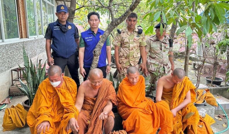 បុគ្គលខ្មែរបួននាក់ដែលក្លែងខ្លួនជាព្រះសង្ឃត្រូវបាននគរបាលអន្តោប្រវេសន៍ចាប់ខ្លួននៅលើភ្នំក្បែរសហគមន៍មួយក្នុងស្រុកស៊ីរ៉ាឆា(Si Racha)ខេត្តឈុនបុរី(Chon Buri)។